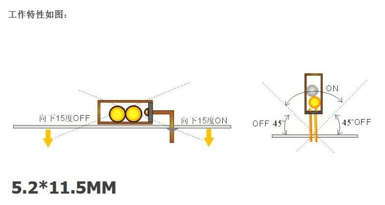 SW-520D滾珠傾斜開關(guān)尺寸圖:
